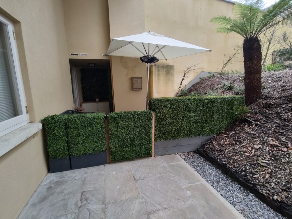 One of the unique challenges of this project was the inability to drill into existing slabs or walls for support. To overcome this obstacle, we ingeniously used sand in the base of the artificial hedges, creating the necessary support for the gate.