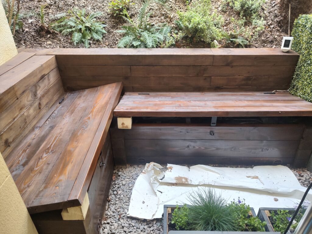 Dive into our latest garden project, where Exceptional Building Services embarked on a journey to completely reimagine a backyard space. This complex garden design involved a multitude of elements, including custom furniture, artificial hedge fences with a discreet access gate, and hidden storage areas beneath the benches.