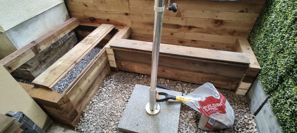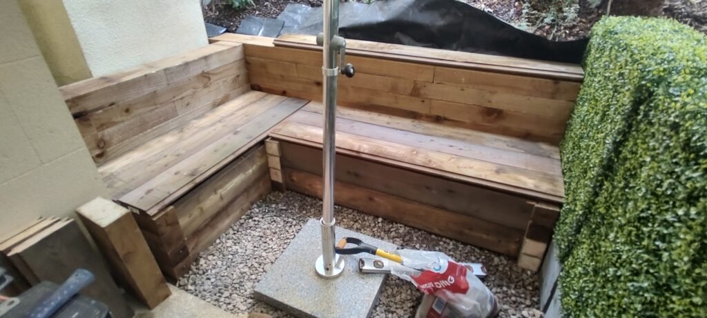 With the design locked in, we sourced all the necessary materials and meticulously prepared the site, ensuring a level foundation to work from. Our skilled craftsmen then set to work, constructing the sitting benches with intricate joinery that showcased our expertise.